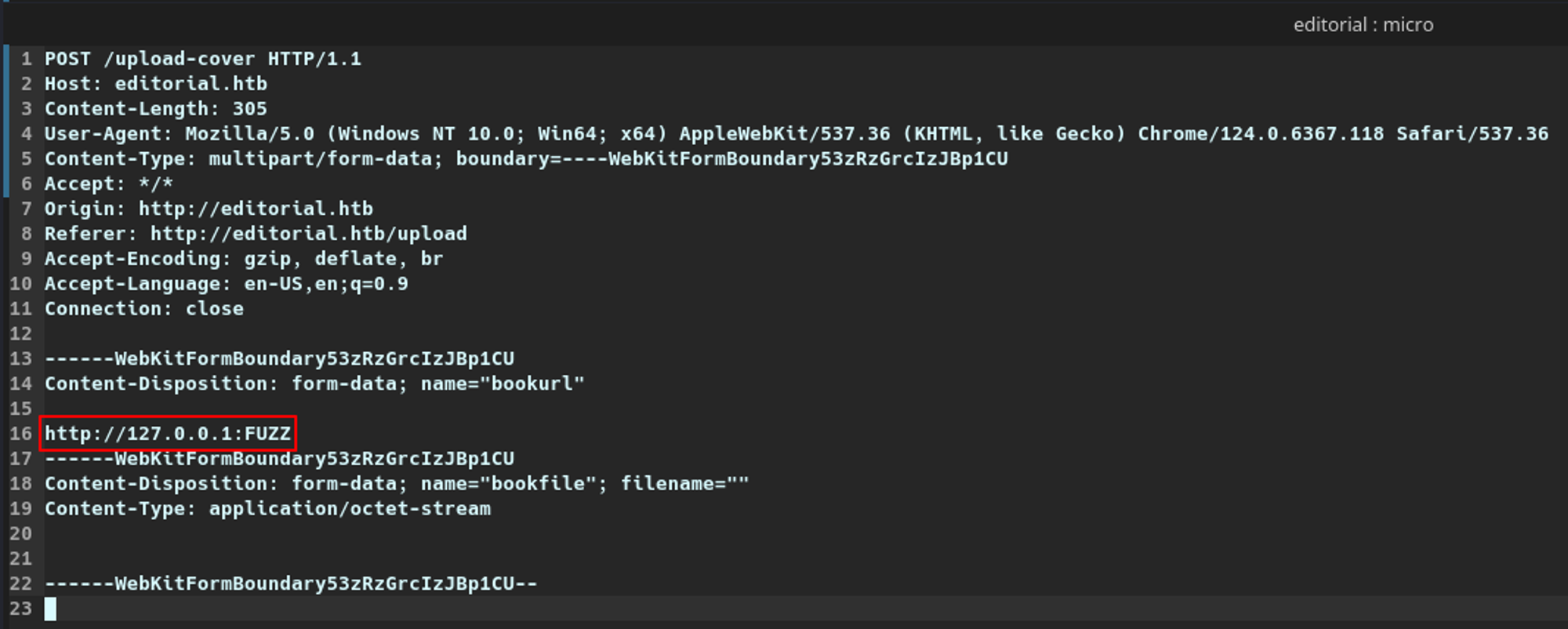 07/28/24 0:52:19:htb/editorial > ffuf -request req.txt -request-proto http -w /usr/share/wordlists/SecLists/Discovery/Infrastructure/65k-ports.txt --fs 61