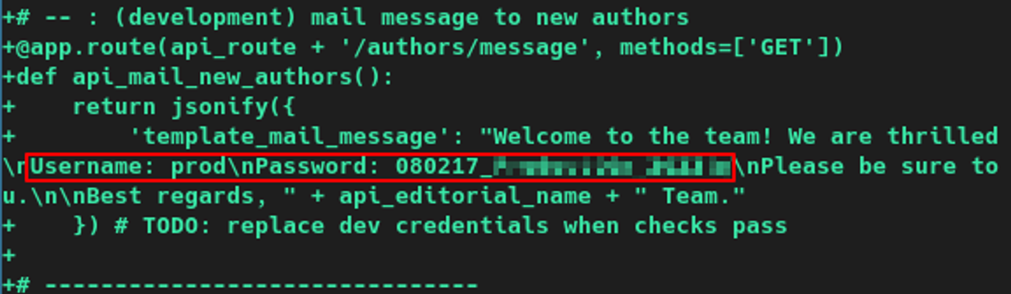 + 'template_mail_message': "Welcome to the team! We are thrilled to have you on board and can't wait to see the incredible content you'll bring to the table.\n\nYour login credentials for our internal forum and authors site are:\nUsername: prod\nPassword: 080217_XXXXXXXXXXXXXXXXX\nPlease be sure to change your password as soon as possible for security purposes.\n\nDon't hesitate to reach out if you have any questions or ideas - we're always here to support you.\n\nBest regards, " + api_editorial_name + " Team."