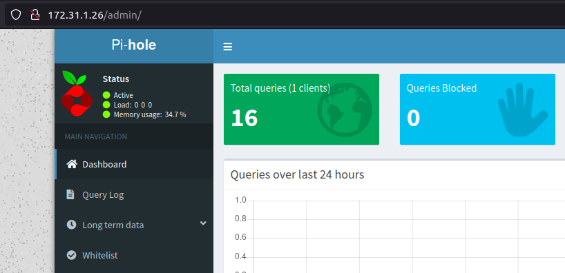 As I am familiar with Pi-hole, I went straight to http://172.31.1.26/admin to access the Pi-Hole interface, but if you didn't know already, you could visit http://172.31.1.26 and click on the "Did you mean to go to the admin panel?" link.
