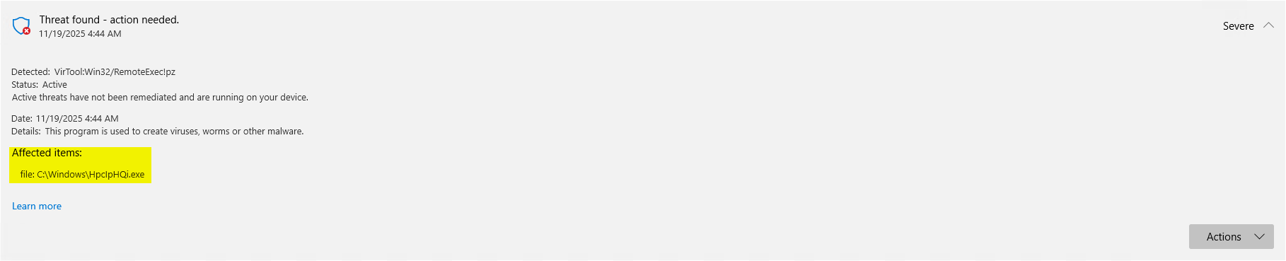 impacket-psexec will appear to work, but then fail after some time. This is because it was also picked up by Windows Defender.