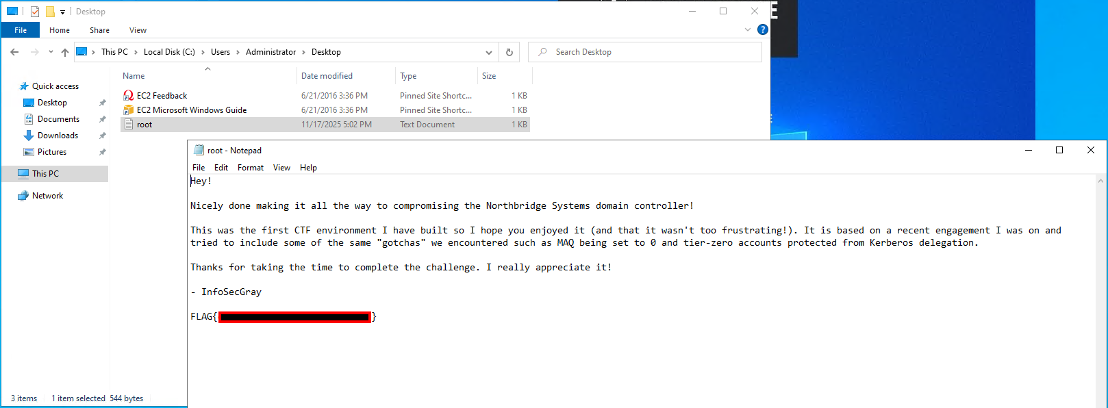 [*] Cleaning up... Accessing NORTHDC01 as Administrator