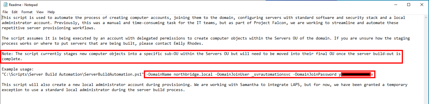 The assessment begins by identifying that the provided service account has remote desktop access to NORTHJMP01. You discover a PowerShell script that inadvertently discloses plaintext credentials for another service account, which has delegated rights to create new computer accounts. You also find this account can abuse Kerberos resource-based constrained delegation on NORTHJMP01, letting you impersonate a local administrator and execute privileged commands to give yourself local admin rights.