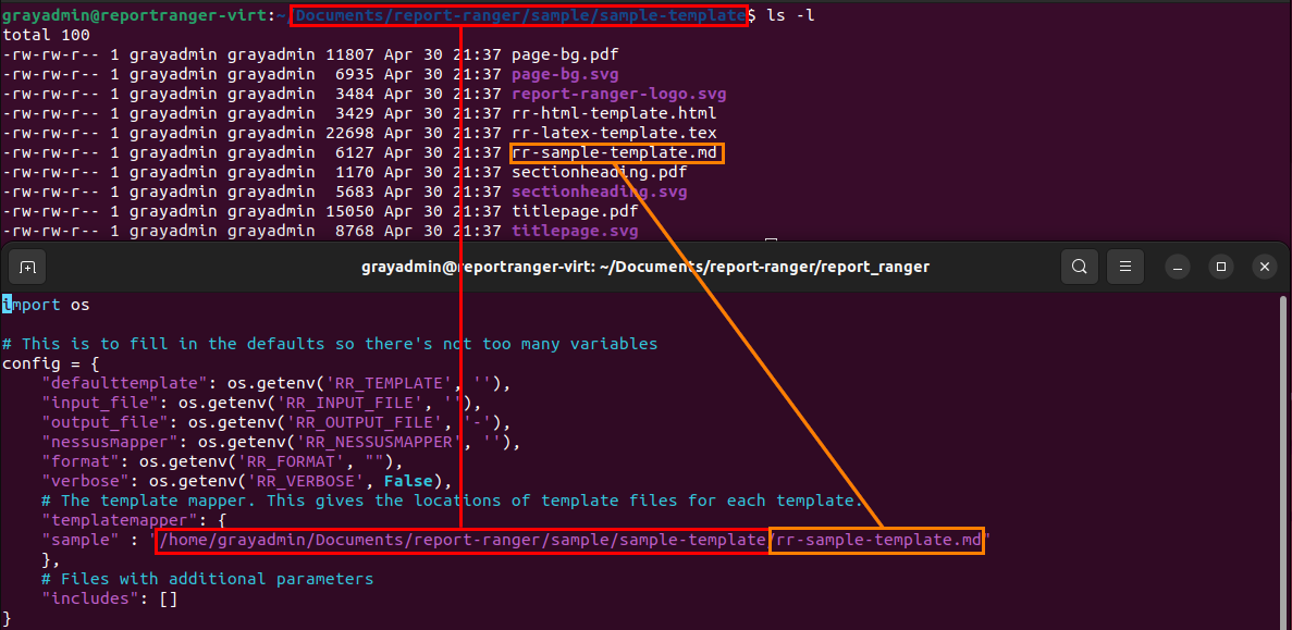 Now that we know where the sample template files are, we need to modify the configuration file to tell Report Ranger the same thing - where the template files for each template are! The configuration file is located at ./report_ranger/config.py.