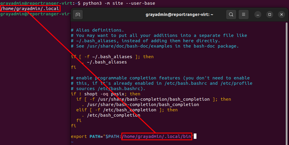 python3 -m site --user-baseModify your respective shell's RC file (e.g. ~/.bashrc or ~/.zshrc) and add the following line to the file. Make sure to append /bin to the end, which is where Python packages like pipenv reside.