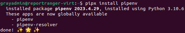 We’re going to install pipenv using pipx which will allow us to manage virtual environments - which is the method Report Ranger is going to be installed.