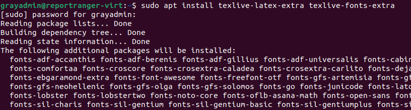 sudo apt install texlive-latex-extra texlive-fonts-extra