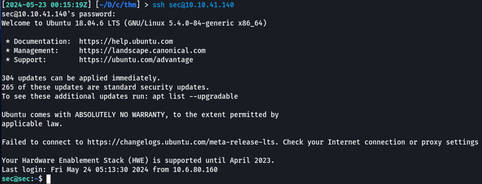 Connected to 10.10.160.227.