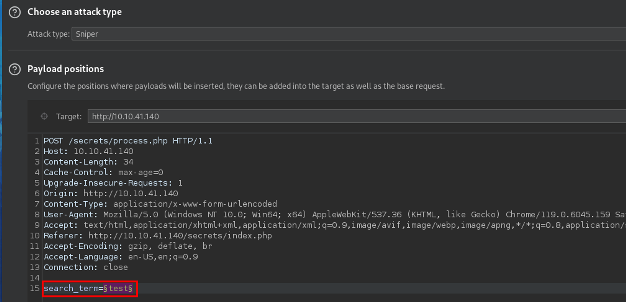 I sent this request to Intruder